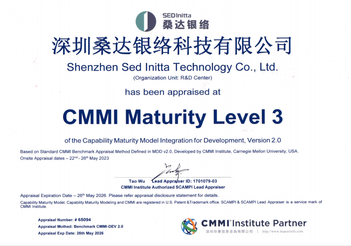 - SED Initta achieved CMMI Maturity Level 3 certification, demonstrating world-class software engineering process capability.